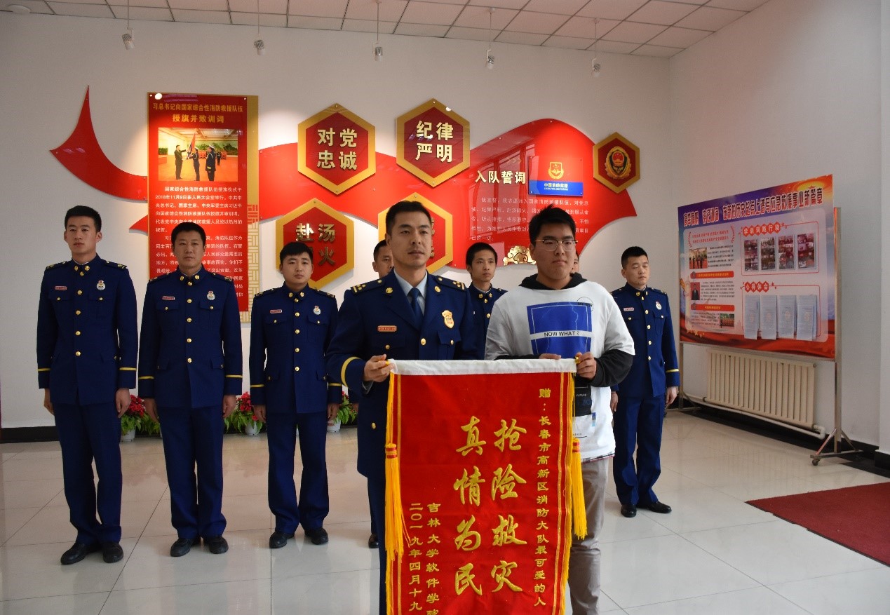 18级辅导员王震老师带领三十余名同学在长春市高新区消防大队开展了“青春心向党,建功新时代”的主题团日活动。
