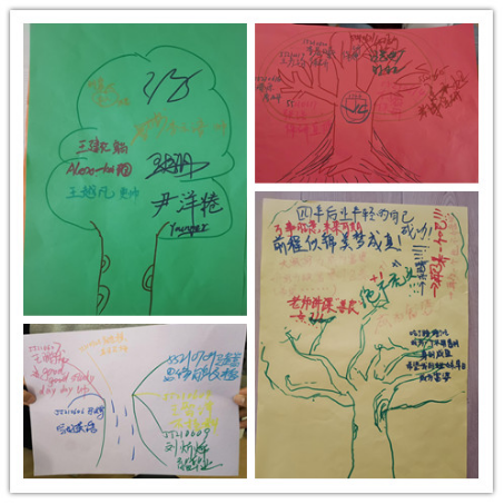 热身游戏后,同学们随机分组,在依次进行简短的自我介绍后,开展“快乐传递”、“信心启迪”、“信任之旅”等小游戏。“快乐传递”活动让同学们将自己的想法和祝愿写在卡片上,鼓励同学们主动交际,不惧未来;“信心启迪”活动让同学们写下自己的三个小目标,为今后的大学生活明确前进方向;“信任之旅”活动,所有同学分批次体验“盲人”感觉,在没有语言沟通的情况下由“引路人”带领到达终点,增强同学间相互信任。以上活动使同学们收获了同学情谊,增强了集体意识,挖掘了自身潜能,调整了自己心态,明晰了努力方向,增进了彼此友谊。随着活动接近尾声,在《相亲相爱的一家人》的背景音乐声中,同学们拿起手中的画笔,共同绘制了一幅《团体树》,写下新学期的美好祝愿。至此,云顶赌场app
