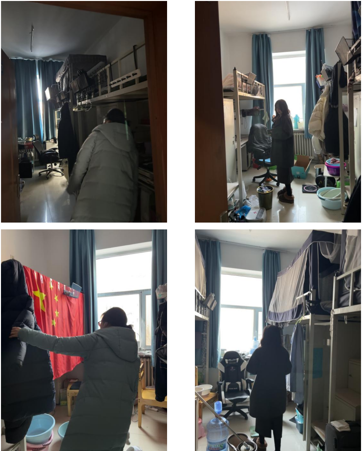 走访过程中,学院重点对合寝情况、违章电器使用情况进行了检查,仍在校的44名学生严格按照合寝安排居住在北苑一公寓和南苑七公寓的12间寝室中,寝室中未检查出违章电器。辅导员再次强调学校安全管理相关规定,叮嘱学生务必重视留校期间个人安全尤其是用电安全,树立安全意识,加强自我管理,并要求寝室负责人关注寝室成员身心健康状态,并对电器和插排使用情况每天进行检查,有问题及时与辅导员沟通。同时学院领导和辅导员对学生留校生活和学习情况进行了了解,尤其关注了寝室温度、餐食等方面问题,积极协调解决学生反映的诉求。