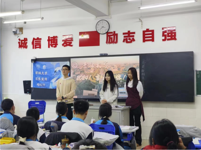 选拔优秀学子作为寒假招生宣传志愿者,回到高中母校开展报考指南、学习成长、青春分享等招生宣传活动。在提升吉林大学知名度和影响力、吸引更多优质生源报考的同时,也为学生参与社会实践和自身锻炼成长提供了良好的平台。