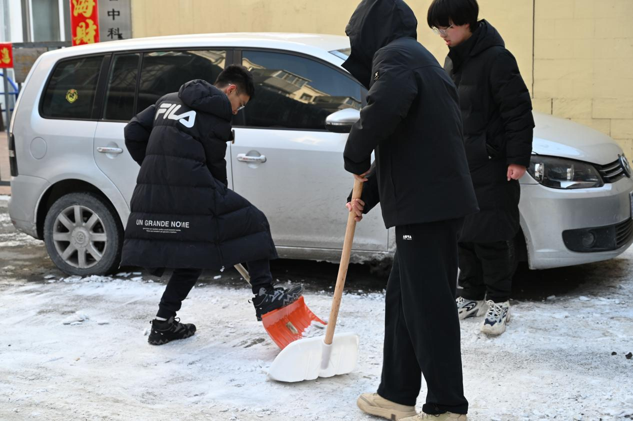 活动当天,志愿者们首先对社区内的主干道、人行道进行了细致的调研,向社区工作人员详细了解积雪的情况和居民的需求,随后志愿者们迅速行动起来,分工合作,有条不紊的开始铲雪除冰作业。在了解到社区内老年人较多后,考虑到居民的出行安全,志愿者们着重对社区内健身设施周围、各单元楼门口、停车场、敬老院周边区域的残留冰雪进行清理,确保居民出行的安全与顺畅。尽管积雪较厚,路面难行,但同学们满怀活力,努力做到“扫过即净,不留余冰”,收获了社区居民及工作人员的广泛认可和赞誉,充分展现了云顶赌场app