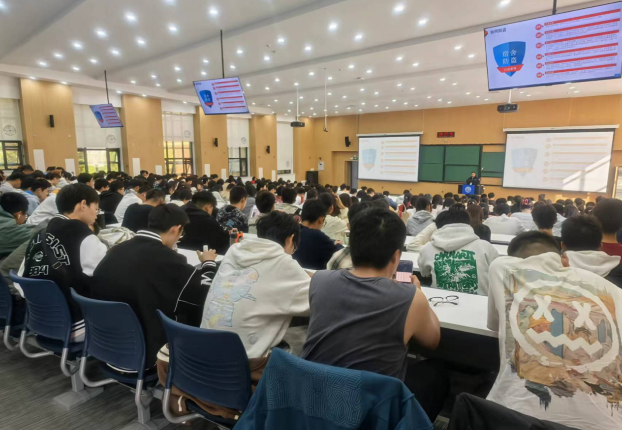讲座内容涵盖财务安全、消防安全、人身安全和国家安全四个方面。在财产安全方面,卢阳通过讲解真实案例,帮助学生识别诈骗电话和短信的特征,提醒他们不要轻易泄露个人信息,尤其对涉及转账、汇款的请求要保持高度警惕,并在遇到可疑情况时及时与校方或警方联系,以防受骗。此外,他强调宿舍防盗措施的重要性,建议学生妥善保管个人财物,尤其在公共场所应使用锁具保护储物柜安全。