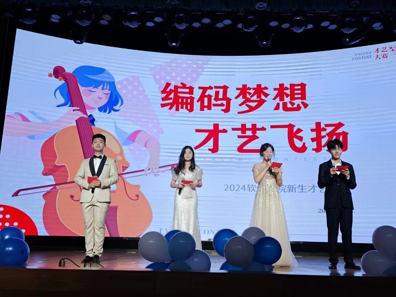 于10月28日晚在敬信报告厅举办了“编码未来 才艺飞扬”新生才艺大赛决赛。本次比赛邀请了2024级新生辅导员王柏晨老师、2023校园歌手大赛冠军张以钧、季军单宝库、周奕彤以及部分学院团学学生干部担任评委,近300名新生与评委共同观看了本场盛大的才艺赛事。