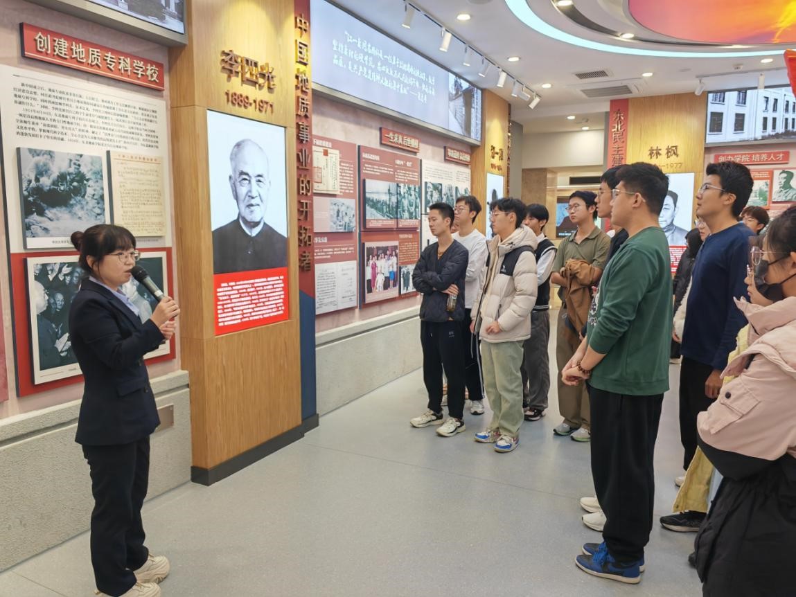 同学们首先踏入“创校先驱”展区,这里陈列着吉林大学第一代领导者和六校首任校长的生平事迹,他们扎根于东北沃土,不畏艰难,勇于创业,为吉林大学的建立打下坚实基础,推动学校的跨越式发展。伴随着讲解员生动的叙述,吉林大学的发展历程如同一幅画卷,缓缓展开在同学们的眼前,吉大人那种敢为人先、坚韧不拔、追求卓越、勤勉不懈的精神也深深地触动了在场的每一位同学。