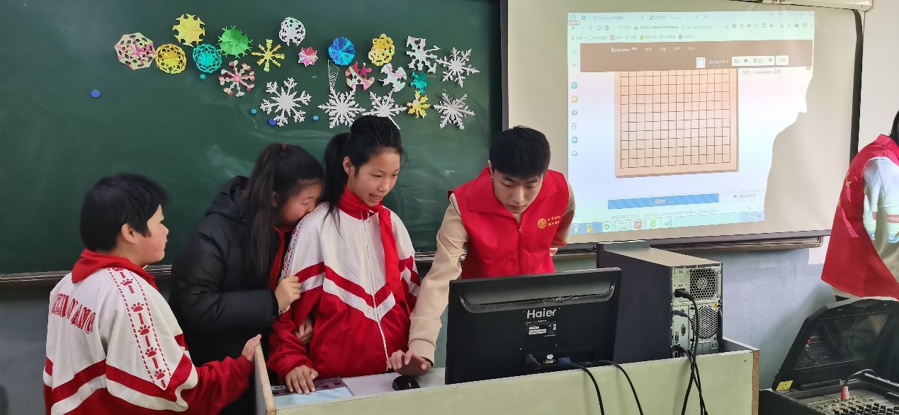 特别设计的五子棋代码游戏成为活动高潮。孩子们通过简单的代码指令操控棋局,与AI展开激烈对决。在紧张又欢乐的氛围中,孩子们体验了编程的乐趣,提升了逻辑思维能力和动手实践能力。
