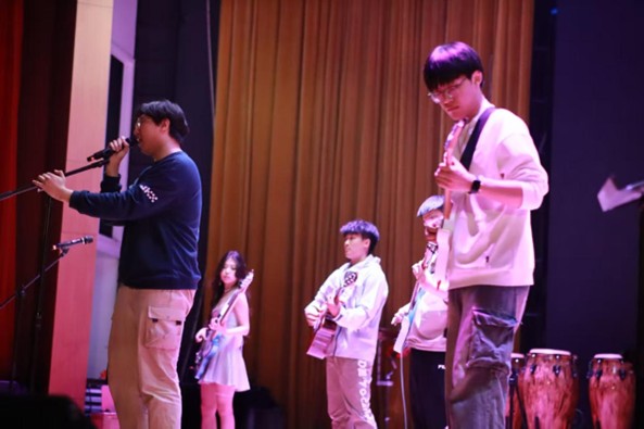 音乐节以JustYe街舞社《sushi&toxic》和《no doubt》震撼开场,律动的舞蹈与变换的光影让舞台璀璨生辉;IOF汤臣七品乐队以经典曲目《21Guns》带观众重回摇滚乐的纯粹年代;东师民谣团的姜璇、翟佳荣和刘青云倾情演绎《梦的光点》《大山》《普通朋友》等歌曲,观众随着歌声感受一个个动人故事。十八吉他社的PAM乐队、假三七乐队、几何脉搏乐队、隐和弦乐队和星束乐队通过《塑料袋》《鲜花》《秦皇岛》等歌曲,以流行、摇滚、电子音乐等多种音乐形式为现场观众带来了一场视听盛宴,充分展示音乐魅力与力量。音乐会最终在舌不切乐队的四首原创作品中落下帷幕,观众们随节拍舞动,沉浸于摇滚乐的纯粹狂欢。整场演出欢呼声和掌声此起彼伏,大家对音乐的热爱让他们尽情享受现场的狂欢。