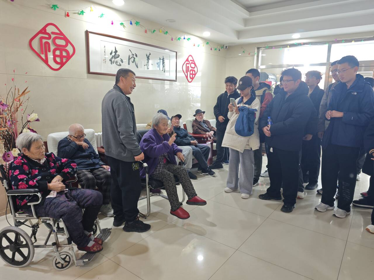 10月19日,软件学院联合中华义工志愿者社团,共30余名志愿者共同前往德尚养老院,开展“青春伴老,志愿同行”主题志愿服务活动。活动以互动交流和文艺表演为主要形式,切实弘扬“敬老、爱老、助老”的传统美德,为老人们送去温暖与陪伴。