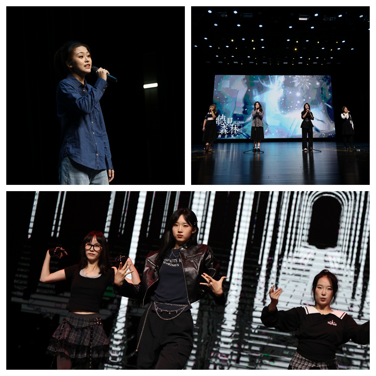 45名研究生同学共同演绎的朗诵《青年说》,气势磅礴,字句铿锵,彰显新时代青年的责任与担当。王佳玉的一首《光年之外》空灵悠远,带领观众遨游于音乐与遐想的星空。街舞串烧《Whiplash》《Illusion》《Go Hard》将舞台化为能量迸发的竞技场,高难度动作与默契配合将晚会推向高潮。四重唱《鹿Be Free》纯净治愈,仿佛林间清风,抚慰心灵。辅导员助理演绎的原创情景剧《重生之我是AC高手?》,以幽默诙谐的方式呈现学子在代码与学业中穿梭的奇想故事,笑声中蕴含对专业学习的思考。付芮荧的《我会等》,歌声真挚动人,勾勒出青春里关于坚持与等待的情感画卷。最后计算机学院110名研究生共同唱响《我和我的祖国》,深情激昂的歌声融合了青春的热血与对祖国的热爱,为整场晚会画上温暖而有力的句号。