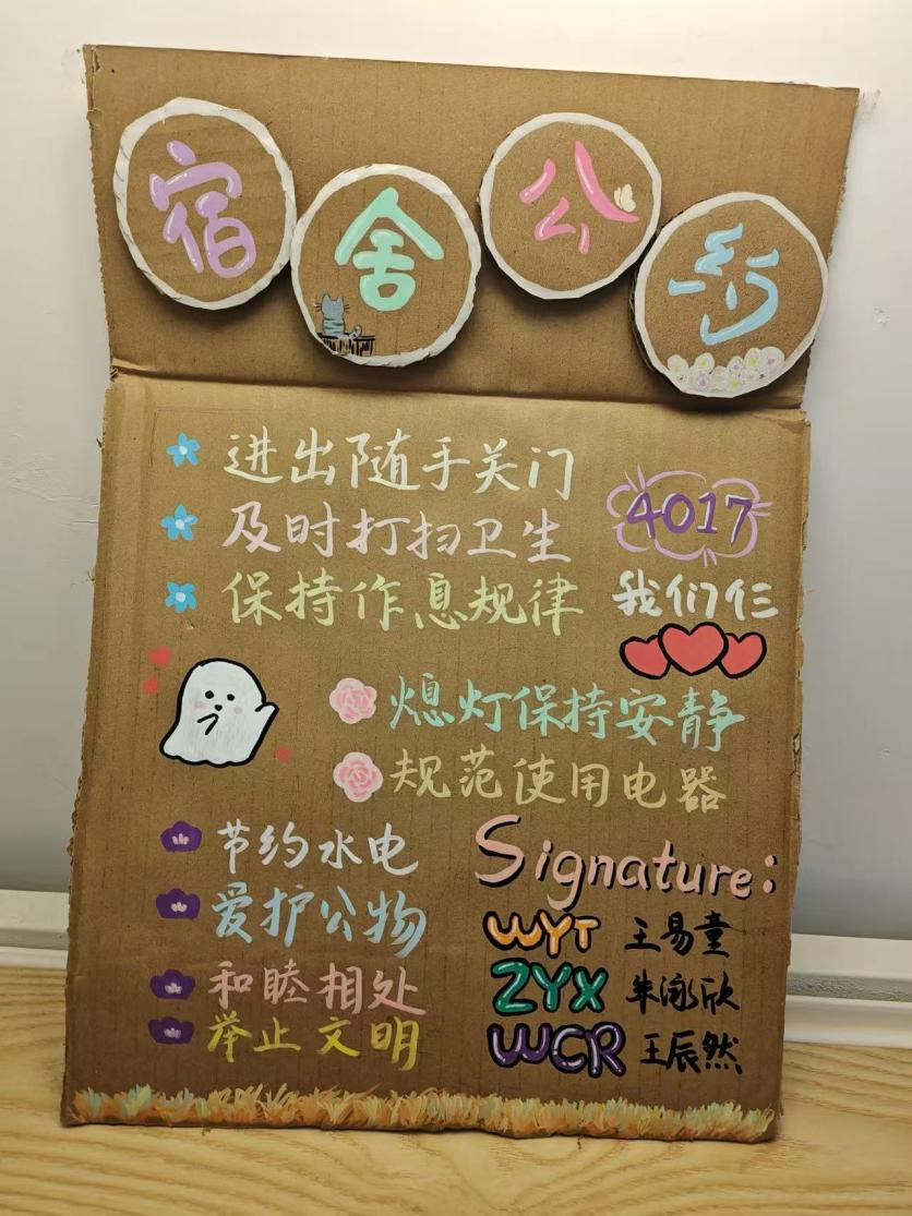 本次文化节明确设置两项基础任务,要求各班所有新生寝室全员参与:一是制定寝室公约并制作主题海报提交,公约核心内容与提交规范通过通知精准传达;二是开展全员参与的寝室卫生大扫除,需提交劳动实景照片。