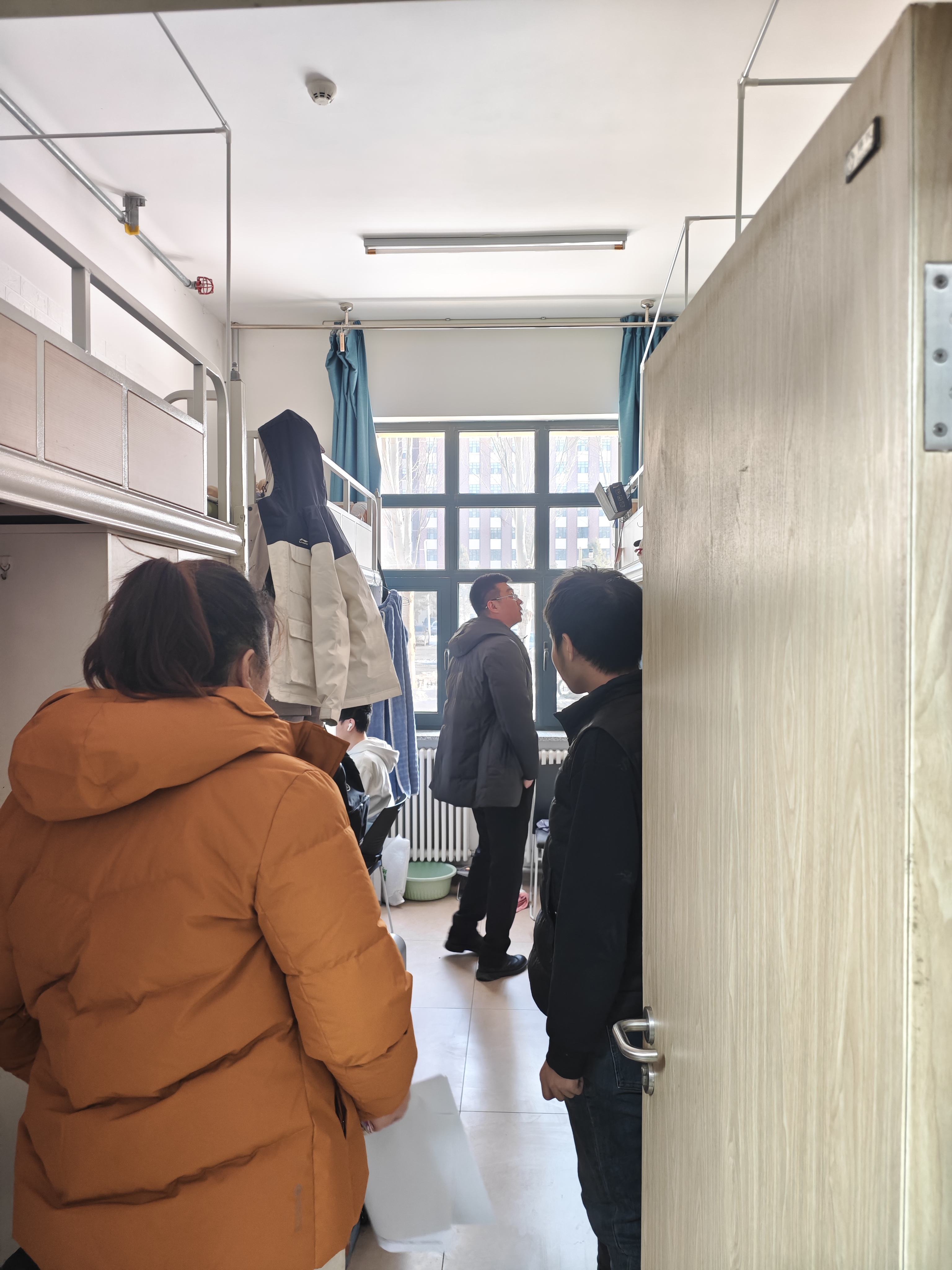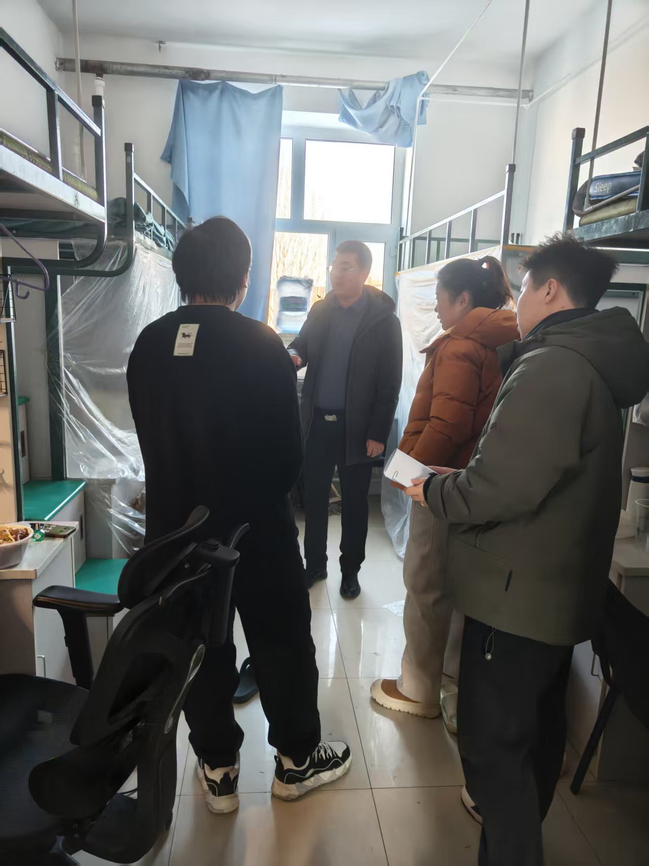 开展研究生假期安全专项检查工作。学院党委副书记冯羿铭、研究生辅导员张译心带队,联合学生骨干组成检查小组,围绕学生离校动态核查、公寓楼电气改造前期准备、保障物资发放及留校学生安全教育四大重点开展工作,为全体研究生平安假期筑牢安全屏障。
