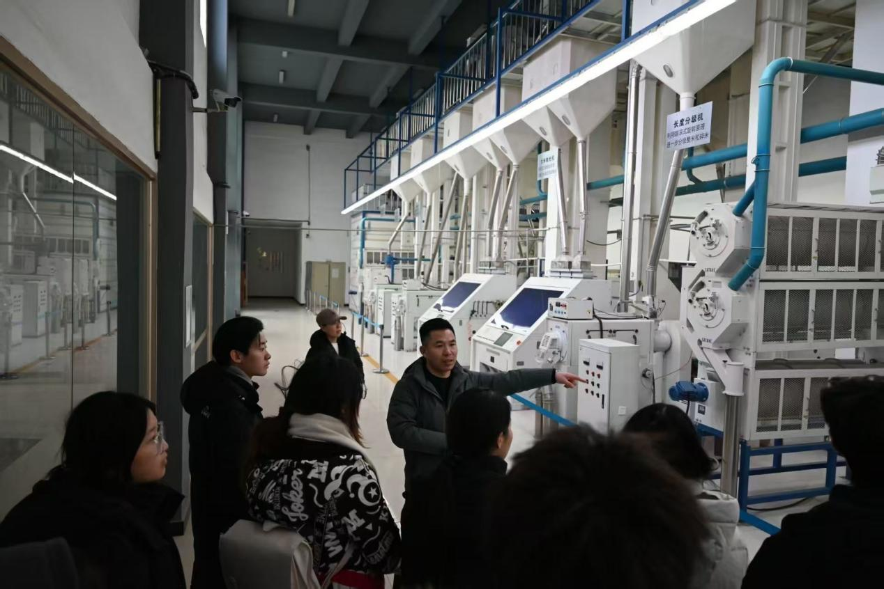 随后,实践队前往吉林市东福米业开展乡村产业发展专项调研。队员们实地参观稻米智能生产车间,完整了解从加工到成品的全流程现代化作业,深入了解企业丰富的优质产品矩阵与亮眼发展成果。参观结束后,实践队与东福米业副总经理进行深度访谈,详细了解“村企合一”发展模式、村民多元收益机制以及企业以“优种、严标、科技”筑牢粮食品质的核心经验,学习企业农文旅融合发展规划。访谈期间,队员们结合专业知识积极提问,找准专业与乡村发展的融合切入点。