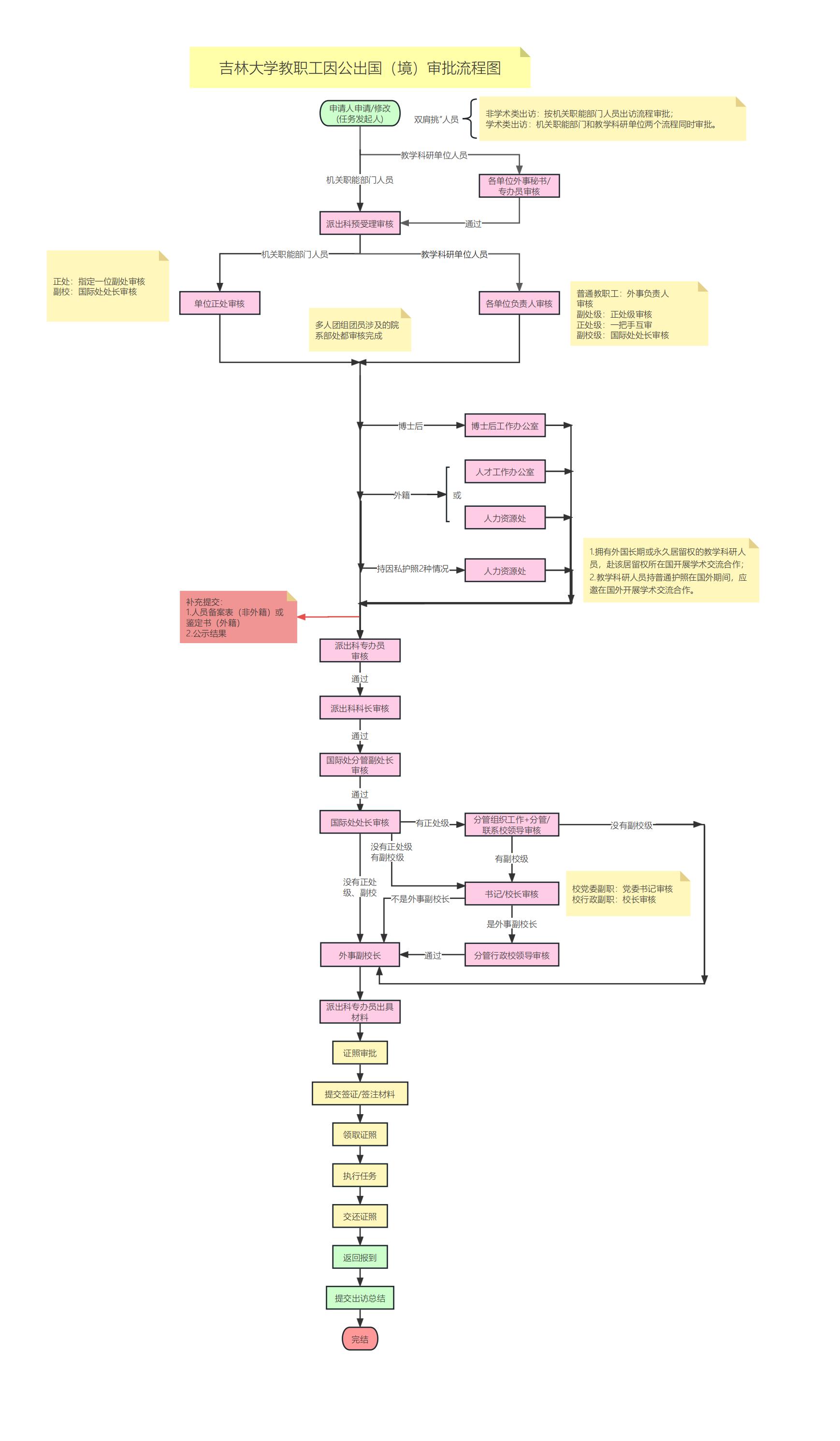 吉林大学教职工因公临时出国(境)申报及审批流程图